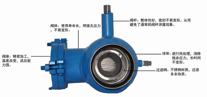 6、過濾網與球體合為一體,濾網球閥連接在管道中本身有過濾功能,可以替代過濾器進行使用,起到一閥多用的效果,節省了管道安裝空間及運營成本,可以阻攔直徑大于4.5mm的雜質通過。
