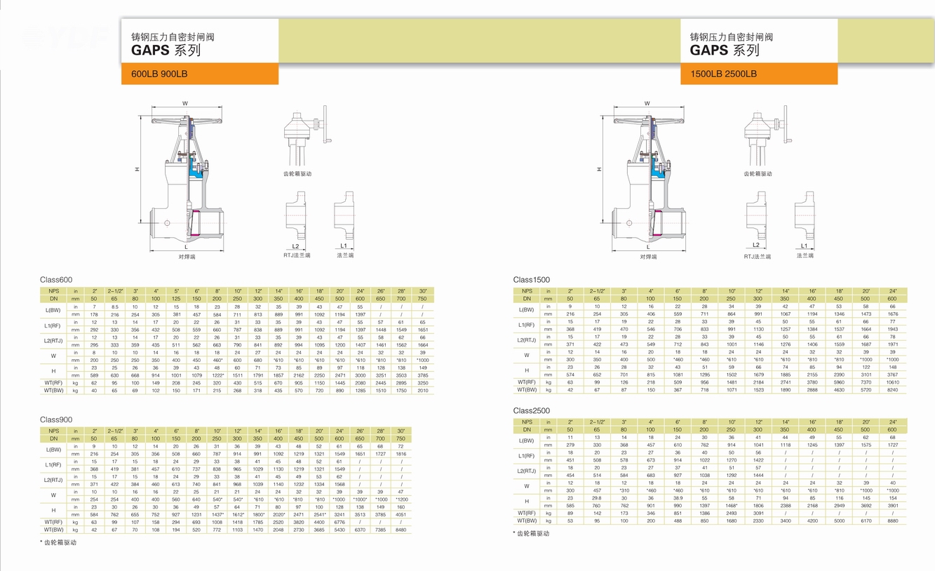 進口壓力自密封閘閥按照API 600,ASME B16.34標準設(shè)計制造并按照API 598標準進行壓力試驗. 并且該系列閥門獲得ISO 15848-1和TA Luft認證。可滿足旁通設(shè)計,雙填料帶隔環(huán)設(shè)計。