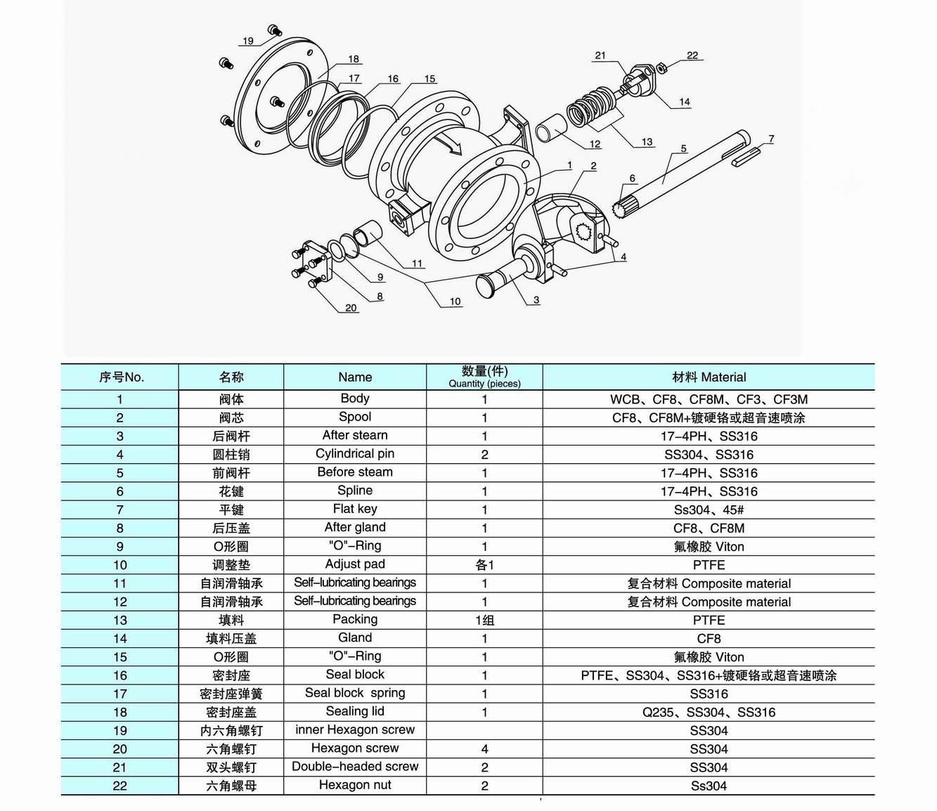 進口氣動法蘭V型球閥的零部件材質