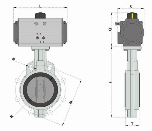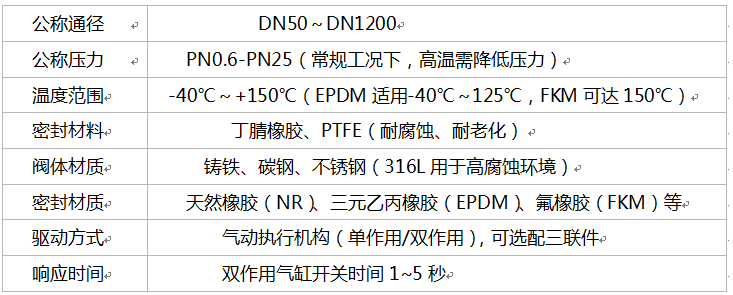 進(jìn)口氣動(dòng)對(duì)夾式襯膠蝶閥通過(guò)氣動(dòng)執(zhí)行機(jī)構(gòu)驅(qū)動(dòng)蝶板旋轉(zhuǎn),實(shí)現(xiàn)流體的快速啟閉與流量調(diào)節(jié)27。其采用對(duì)夾式連接設(shè)計(jì),無(wú)需額外法蘭,顯著節(jié)省安裝空間,尤其適用于緊湊型管道系統(tǒng)(如船舶、化工裝置)56。閥體內(nèi)壁及蝶板表面襯覆橡膠材料(如NBR、EPDM、FKM),兼具耐腐蝕性與密封性能,可適配腐蝕性介質(zhì)及衛(wèi)生要求較高的場(chǎng)景