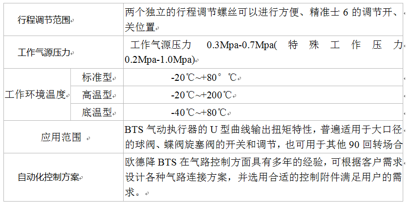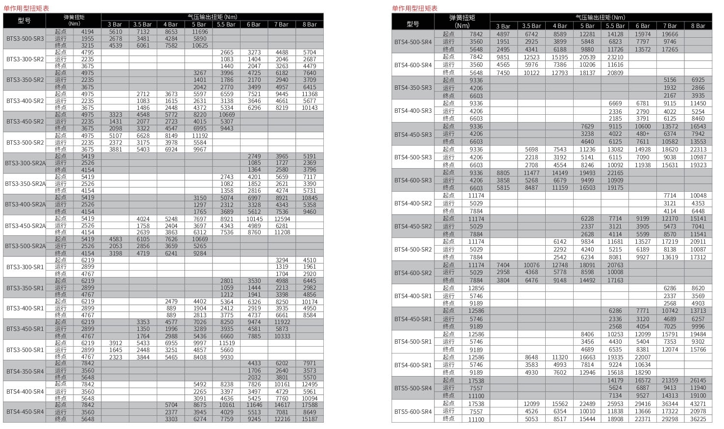 BTS系列雙作用執行器可以提供最大270000NM的扭矩輸出,單作用執行器可以提供最大120000NM的扭矩輸出(工作壓力3-7巴)