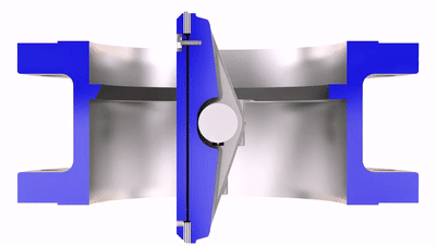 蝶板轉(zhuǎn)動(dòng)至15° ~25°時(shí),蝶板密封面完全脫離閥座密封面;