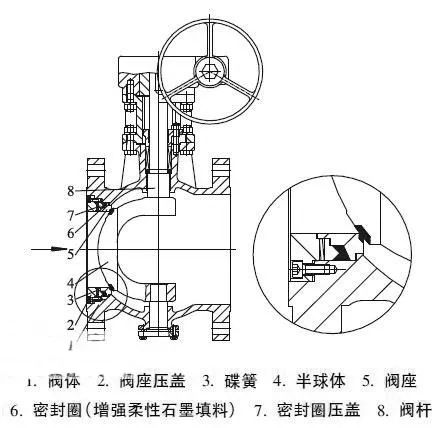 進(jìn)口偏心半球閥具有啟閉迅速,輕便,流阻小,關(guān)閉時利用楔形原理能夠清除結(jié)垢,便于氣控和電控等優(yōu)點(diǎn),得到各行各業(yè)廣泛應(yīng)用。針對偏心半球閥在高溫高壓工況下的應(yīng)用,設(shè)計了一種新型的密封副自密封結(jié)構(gòu)。