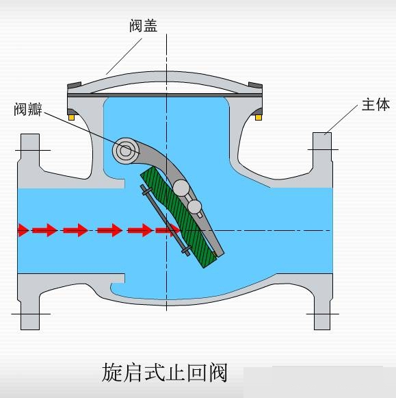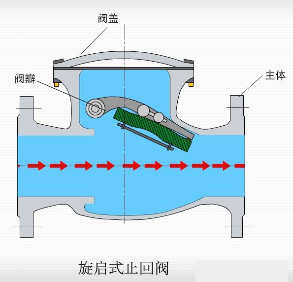 當旋啟式止回閥安裝在垂直管道中時,管道中的內部介質從下往上流動,如果出現緊急停止的狀況,內部的閥門也會因為自身重力作用與內部介質一起流回管道中,同時內部閥門也會自動關閉,起到指揮作用。當旋啟式止回閥安裝在水平管道中時,管道中內部介質通過單一方向流動也可以自動關閉。